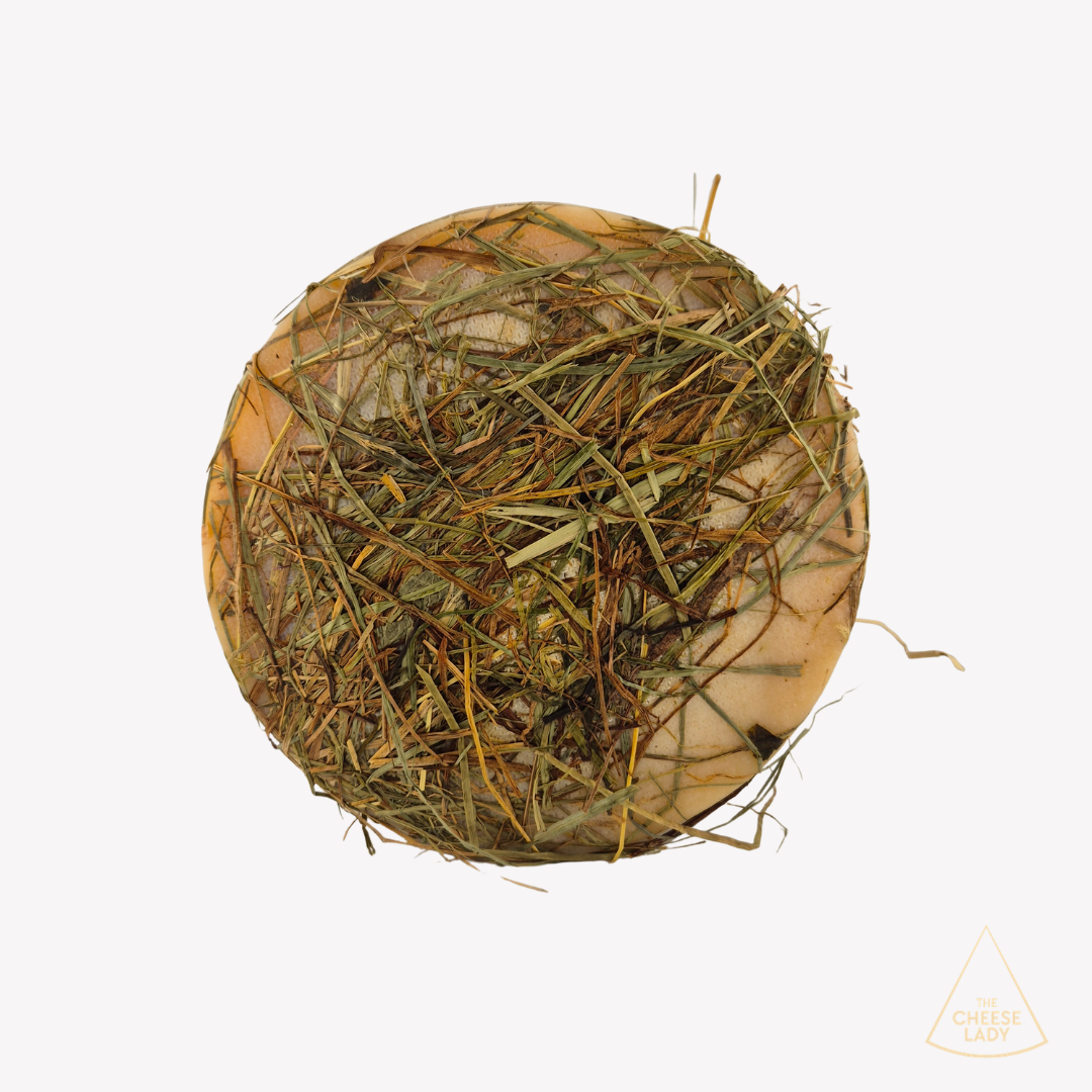 The pasteurised organic goat’s milk yields a compact, ivory-white paste with a thin, hay-covered rind that tells of old-world craft and time-honoured care. Aged for at least three months, it carries just enough salt to balance its soft sweetness, while the hint of field grasses enriches both aroma and flavour.