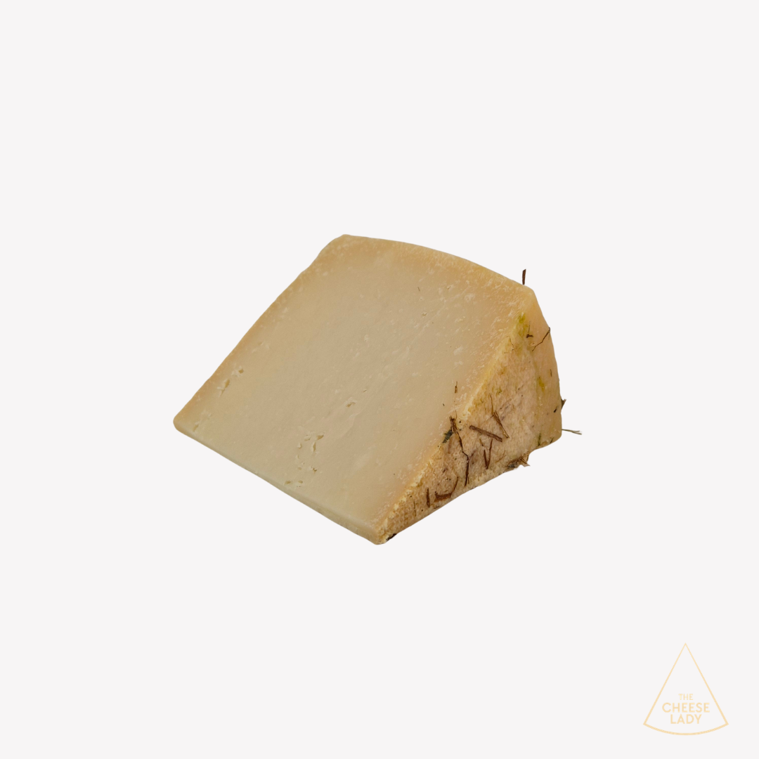 Capra Fieno is a quietly captivating Italian goat’s-milk cheese from the Veneto, matured with its rind in fragrant dry hay. This traditional ripening imparts gentle herbal and honeyed notes that linger alongside a subtle savoury sweetness, giving the cheese an elegant, natural complexity.